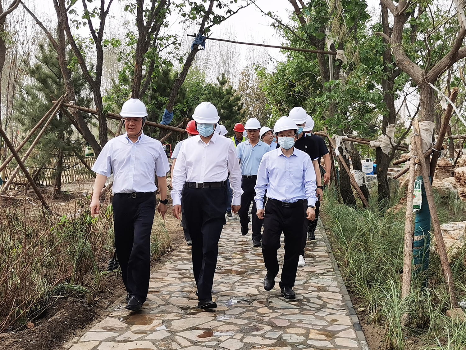 張建軍董事長向吳清海書記匯報了雄安郊野公園承德園的規(guī)劃設計、功能布局、工程建設等有關情況后,吳清海書記一行實地踏查了承德展園施工現(xiàn)場。