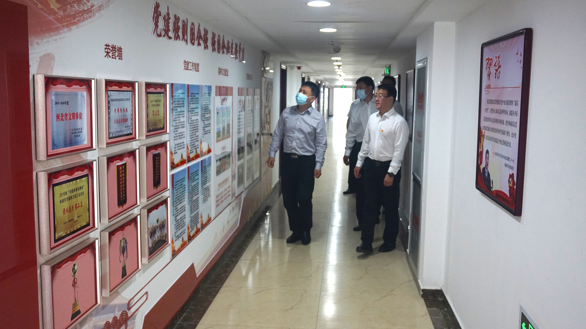 郭旭濤書記首先參觀了集團公司黨建文化墻、黨員活動室和慶祝建黨100周年書畫攝影大賽作品展,隨后召開座談會議,集團公司全體班子成員參加會議。