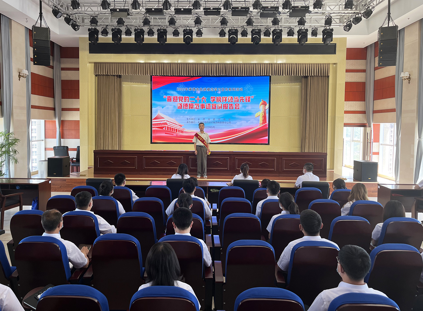 為進(jìn)一步發(fā)揮“新時(shí)代承德榜樣” “道德模范”先進(jìn)典型的示范引領(lǐng)作用,大力弘揚(yáng)塞罕壩精神,全面助力“四個(gè)再建功立業(yè)”,匯聚起公司高質(zhì)量發(fā)展的精神動(dòng)力,喜迎黨的二十大勝利召開,5月27日,由市委宣傳部主辦的“喜迎黨的二十大? 學(xué)榜樣爭當(dāng)先鋒”道德模范事跡宣講報(bào)告會(huì)在國控集團(tuán)成功舉行。