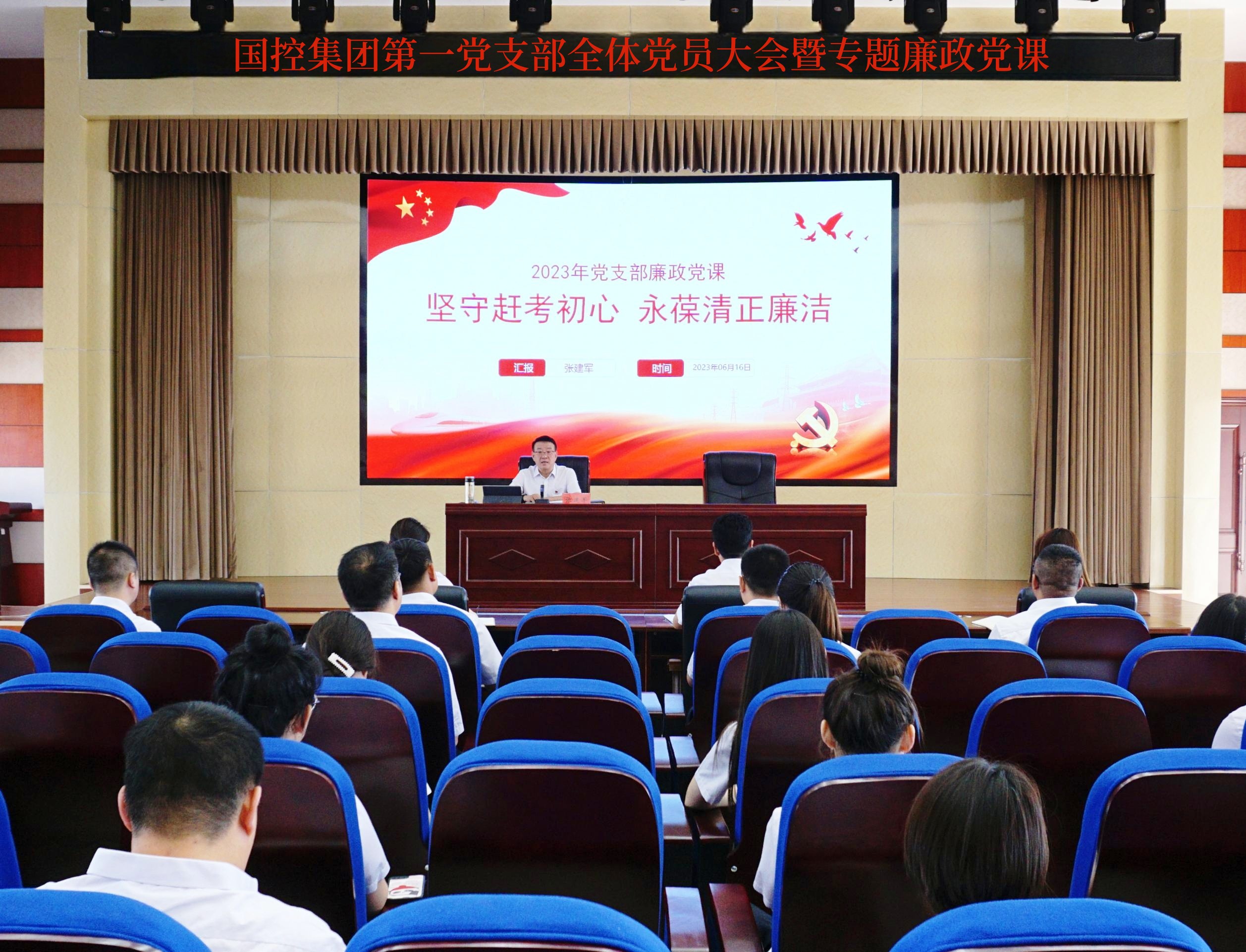 6月16日上午,國控集團第一黨支部召開全體黨員大會暨專題廉政黨課。集團公司黨委書記、董事長張建軍出席會議并作廉政黨課。黨委委員、紀委書記房寶軒主持會議并作廉政黨課,一支部全體黨員參加了會議。