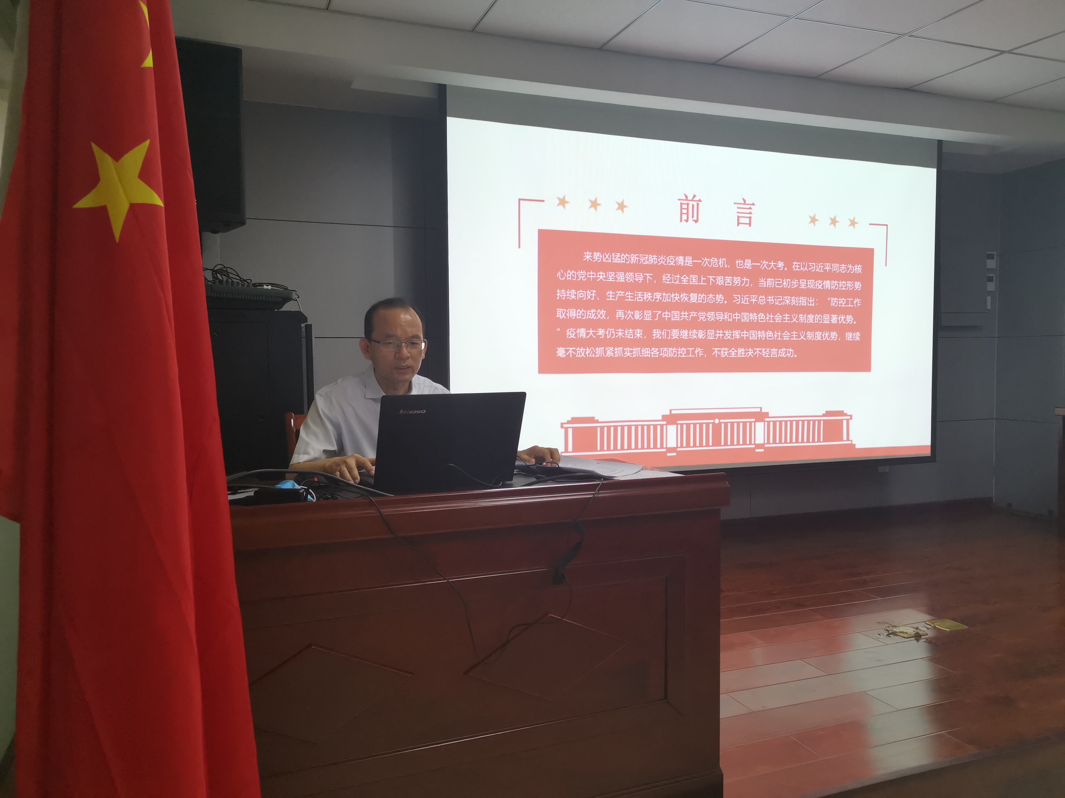 2020年7月2日上午,中共承德市國控投資集團有限責任公司第二支部委員會支部書記焦俊良同志以“在大考中彰顯中國特色社會主義制度優(yōu)勢”為題,為全體支部黨員和入黨積極分子上了一堂別開生面的黨課。
